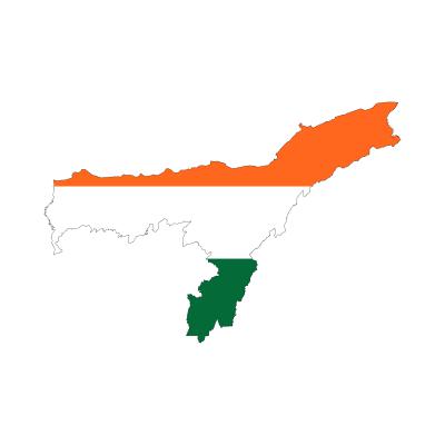 This vector outline map of Assam offers accurate boundaries for tea, tourism, and logistics graphics. It is ideal for reports and travel products. The vector format ensures crisp scalable quality.